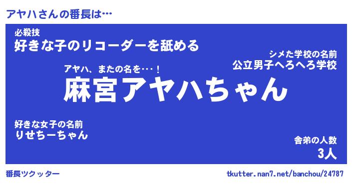 | 欧米人風あだ名 | 『マイケルアヤハ』『アヤハクリステル』 |