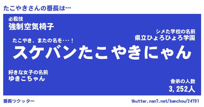 | ファンタジー風あだ名 | 『タコフェル』『エターナルタコヤキー』 |