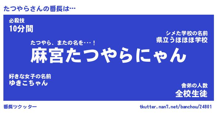 | 意味不明あだ名 | 『ペロリンたつやら』『永久保存たつやら』 |