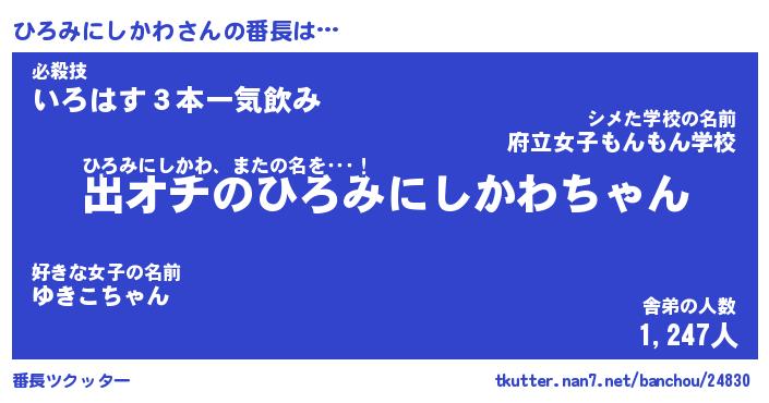 | 意味不明あだ名 | 『ペロリンひろみにしかわ』 |
