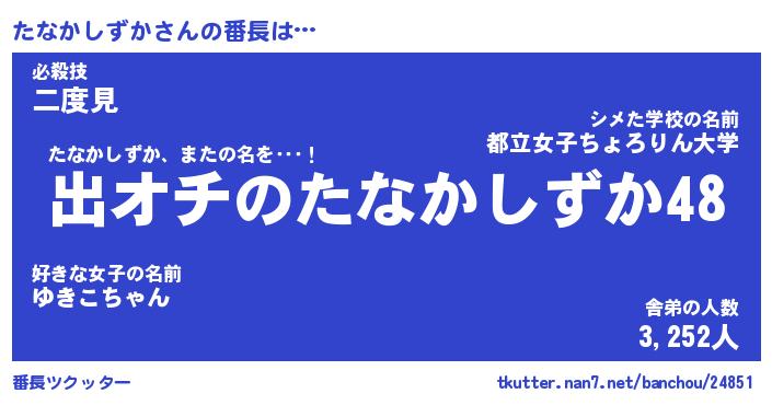 | 提督の名前『たなかしずか提督』嫁『大井』 |