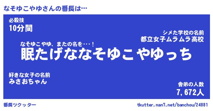 | 伝説のあだ名 | 『封印されしスナイパーなそゆこやゆ』 |