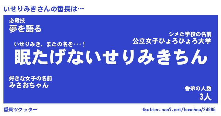 | 肩書あだ名 | 『いせりみき社長』『いせりみき大統領』 |