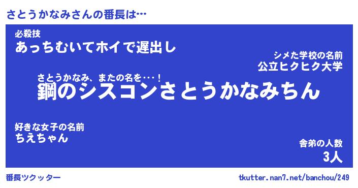 | ヒーロー風カッコイイあだ名 | 『スーパーサトウカナミ』『魔戒騎士サト』 |