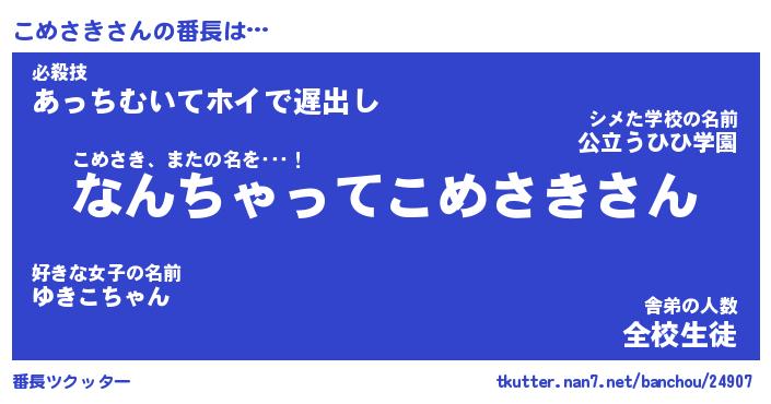 | ファンタジー風あだ名 | 『コメフェル』『エターナルコメサキー』 |
