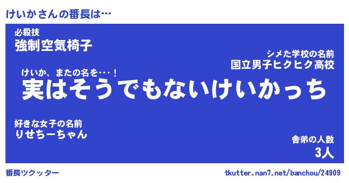 | ヒーロー風カッコイイあだ名 | 『スーパーケイカ』『ウルトラけいかマン』 |