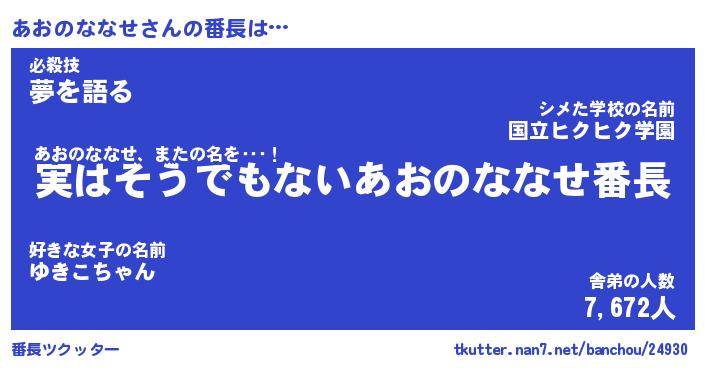 | ヒーロー風カッコイイあだ名 | 『スーパーアオノナナセ』『炎刃騎士アオ』 |