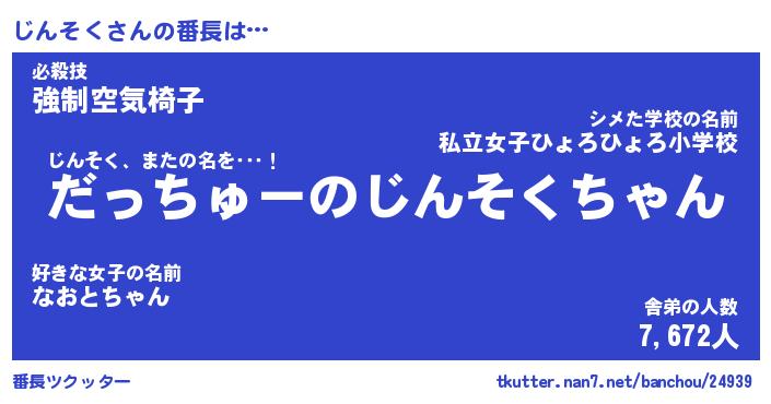 | 意味不明あだ名 | 『ペロリンじんそく』『永久保存じんそく』 |