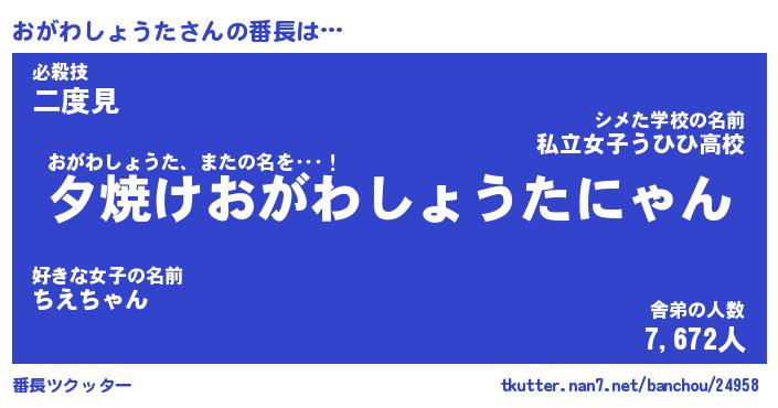 | 男性向けラノベタイトル風あだ名 | 『オガワショウタアートオンライン』 |