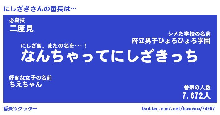 | 肩書あだ名 | 『にしざきCEO』『にしざき総理大臣』 |