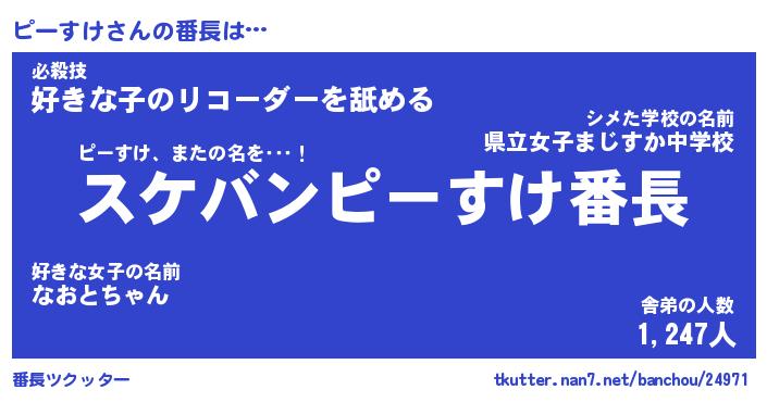 | 伝説のあだ名 | 『不死鳥のスナイパーピーすけ』 |