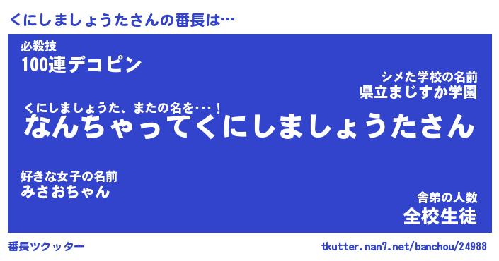 | 伝説のあだ名 | 『伝説のスナイパーくにしましょうた』 |