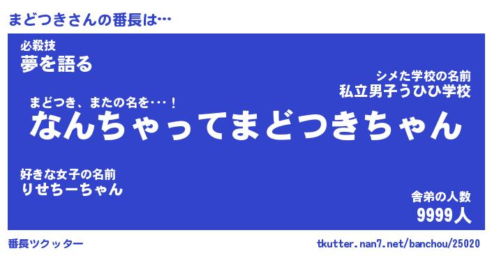 | ヒーロー風カッコイイあだ名 | 『スーパーマドツキ』『銀牙騎士マド』 |