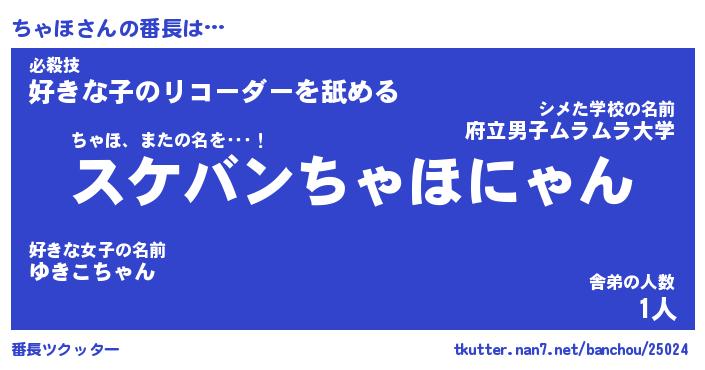| 意味不明あだ名 | 『ペロリンちゃほ』『ちゃほフォーエバー』 |