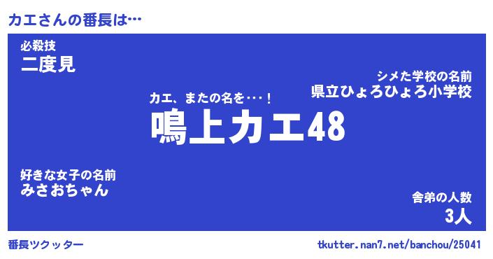 | ヒーロー風カッコイイあだ名 | 『スーパーカエ』『ウルトラカエマン』 |