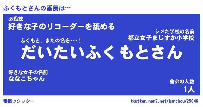 | 意味不明あだ名 | 『ペロリンふくもと』『永久保存ふくもと』 |