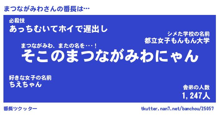 | 意味不明あだ名 | 『ペロリンまつながみわ』 |