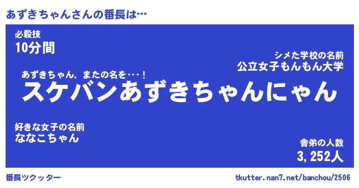 | 肩書あだ名 | 『あずきちゃん社長』『あずきちゃん班長』 |