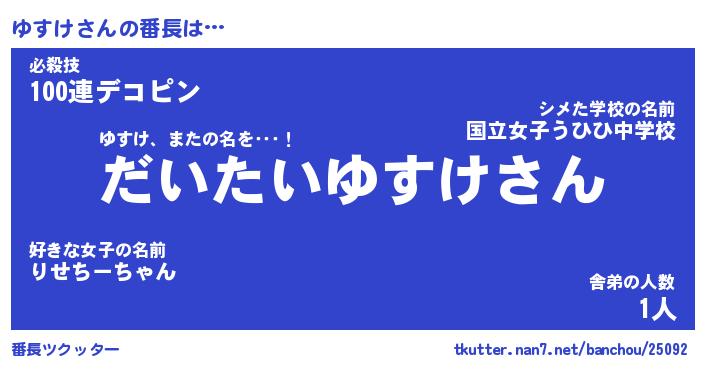 | 意味不明あだ名 | 『ペロリンゆすけ』『ゆすけフォーエバー』 |