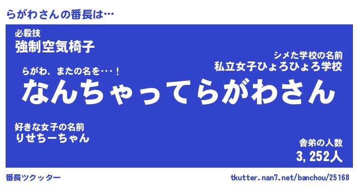 | ヒーロー風カッコイイあだ名 | 『スーパーラガワ』『ウルトラらがわマン』 |