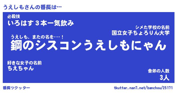 | 意味不明あだ名 | 『ペロリンうえしも』『永久保存うえしも』 |