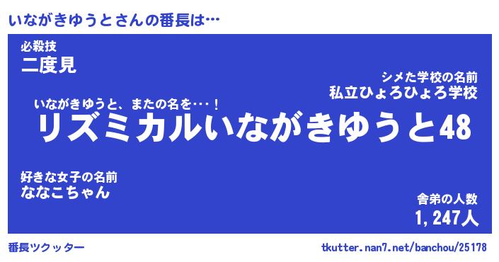 | 恥ずかしいあだ名 | 『プリティーいながきゆうと』『いなちん』 |