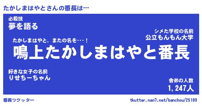 | 肩書あだ名 | 『たかしまはやと御曹司』 |