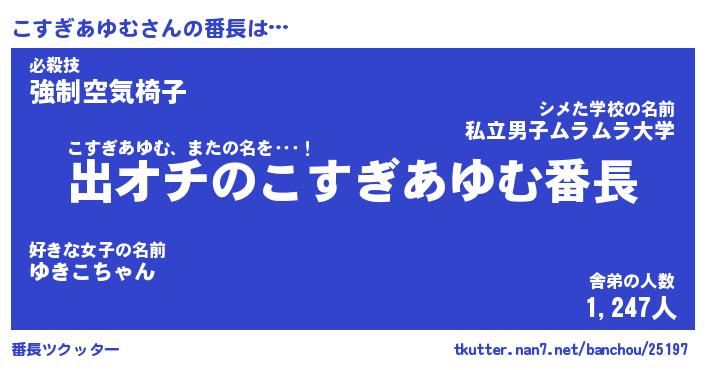 | 伝説のあだ名 | 『伝説のスナイパーこすぎあゆむ』 |