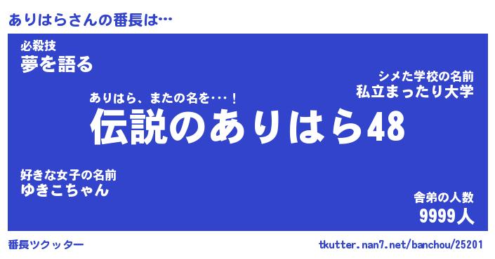 | ヒーロー風カッコイイあだ名 | 『スーパーアリハラ』『天弓騎士アリ』 |