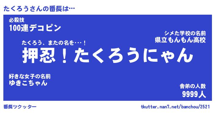 | ヒーロー風カッコイイあだ名 | 『スーパータクロウ』『天弓騎士タク』 |