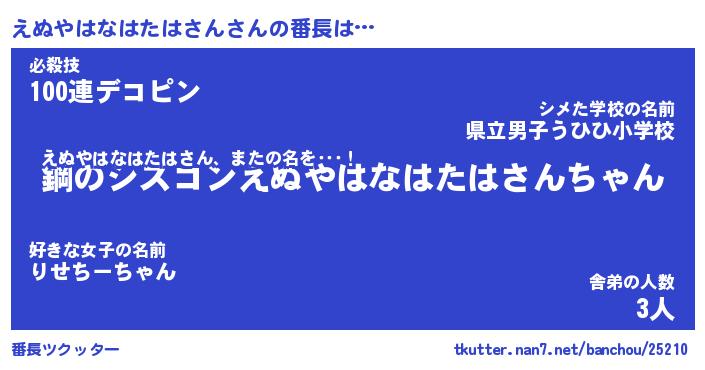 | 2回繰り返すあだ名 | 『えぬえぬ』『ええぬぬ』『おらおら』 |