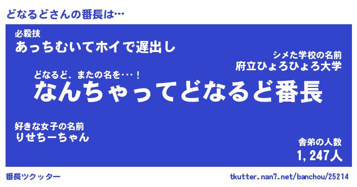 | 意味不明あだ名 | 『ペロリンどなるど』『永久保存どなるど』 |