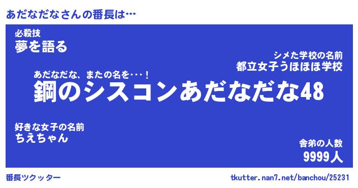 | ヘコむあだ名 | 『あだもー』『なまこ酢』 |