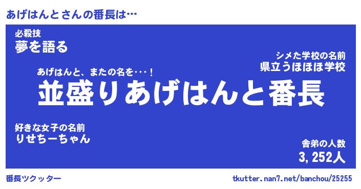 | 伝説のあだ名 | 『不死鳥のスナイパーあげはんと』 |