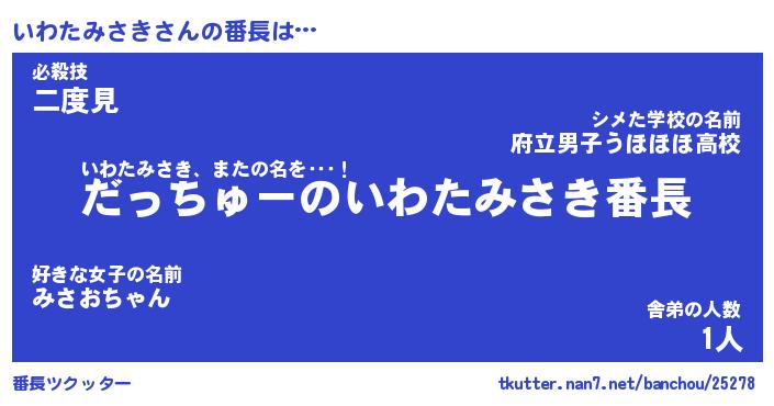 | 伝説のあだ名 | 『伝説のスナイパーいわたみさき』 |