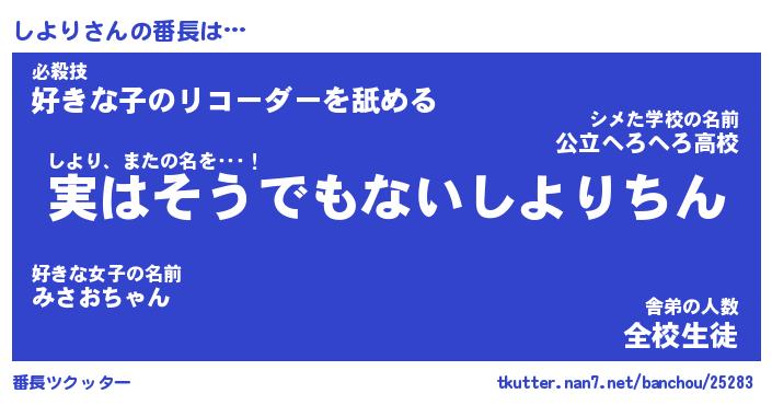 | ヒーロー風カッコイイあだ名 | 『スーパーシヨリ』『ウルトラしよりマン』 |