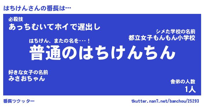 | 意味不明あだ名 | 『ペロリンはちけん』『永久保存はちけん』 |
