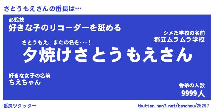 | ヒーロー風カッコイイあだ名 | 『スーパーサトウモエ』『炎刃騎士サト』 |