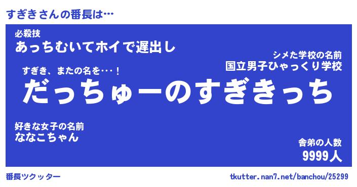| ピコ太郎風あだ名 | 『スコ二郎』『ピス一郎』『スギ十郎』 |