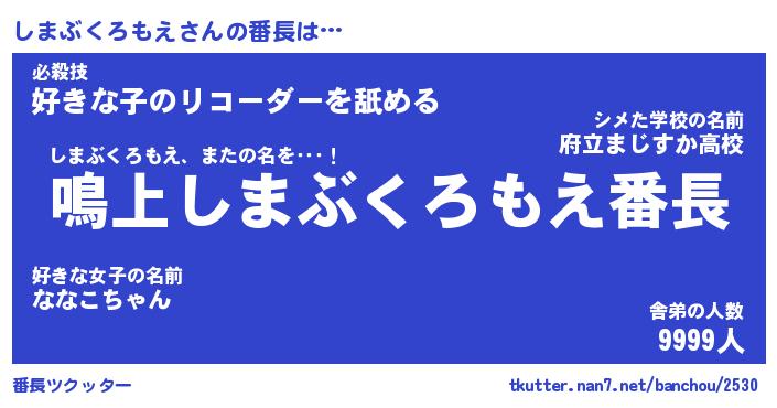 | ヒーロー風カッコイイあだ名 | 『スーパーシマブクロモエ』 |