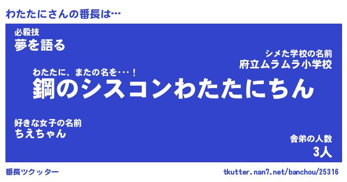 | 肩書あだ名 | 『わたたに店長』『わたたに大統領』 |