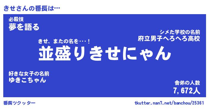 | ファンタジー風あだ名 | 『キセフェル』『エターナルキセー』 |