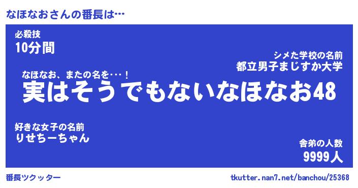 | 意味不明あだ名 | 『ペロリンなほなお』『永久保存なほなお』 |