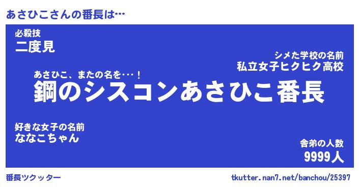 | ヒーロー風カッコイイあだ名 | 『スーパーアサヒコ』『天弓騎士アサ』 |