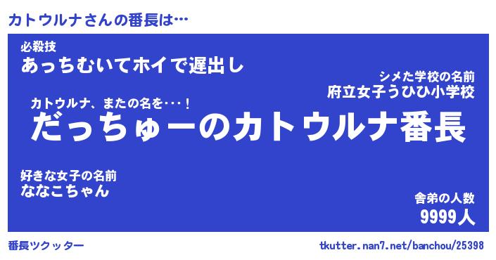 | ヒーロー風カッコイイあだ名 | 『スーパーカトウルナ』『天弓騎士カト』 |