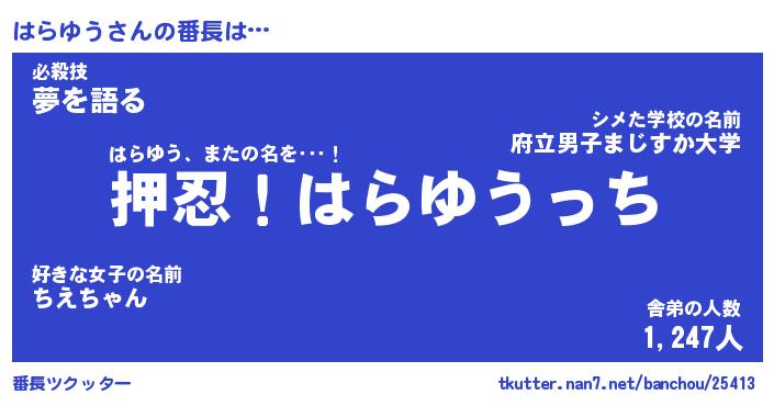 | ファンタジー風あだ名 | 『ハラフェル』『エターナルハラユウー』 |