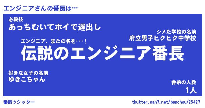| ファンタジー風あだ名 | 『エンフェル』『エターナルエンジニアー』 |