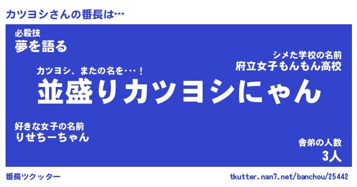 | 意味不明あだ名 | 『ペロリンカツヨシ』『永久保存カツヨシ』 |