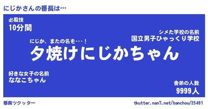 | ファンタジー風あだ名 | 『ニジフェル』『エターナルニジカー』 |