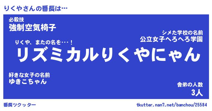 | 意味不明あだ名 | 『ペロリンりくや』『りくやフォーエバー』 |